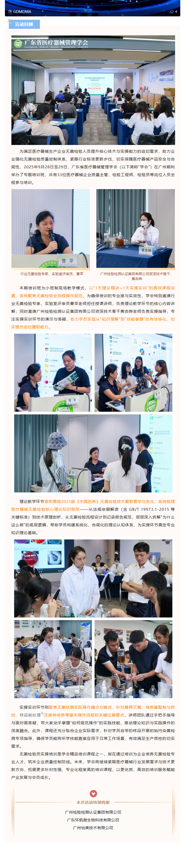 2025年医疗器械无菌检验员专题培训班顺利举办!